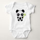 A happy baby panda infant creeper. A cuddly little panda cub holding a cute stick of green bamboo. A fun gift for baby showers, panda lovers, and fans of adorable animal kawaii.