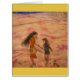 Shows mother and daughter collecting seashells from a watercolour. also with "happy beachcombing" slogan