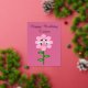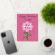 This awesome foil postcard features a graphic image of a cute pink bumblebee with bright pink stripes, black eyes, pink antennae and black legs. It has pretty blue and white wings. The bee is sitting on the middle of a pretty pink sunflower. The flower has a green stalk and three leaves. The message "Bee Day Girl" appears spread over the three leaves. There is custom text in beautiful gold foil so you can include a message at the top.