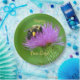 These birthday paper plates feature a beautiful image of a bee gathering nectar from a purple thistle.