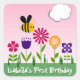 Cute digital design featuring a bumblebee, flowers, grass, and a cloud. Customise text. Colours include yellow, green, pink, purple, blue, black and white.