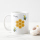Happy bees and honeycomb Mug. Happy calligraphy can be personalised.