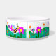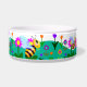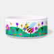 This ceramic pet bowl is decorated with cute bees forageing in colourful flowers on hills.