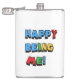Well made flask, a little better than I had expected. Flask came in clear plastic box which gave it a nice presentation when I took it out of the zazzle packaging. Image is not printed on flask but on sticker. Don't know how this will hold up I haven't used it yet. This would make a Great gift! I plan to purchase more for friends! Cheers. I thought a little brighter than computer. Very crisp, writing wasn't