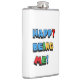 Flask white with large bright Primary colour letters. "Happy Being Me" Personalise by adding a Name.