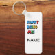Vertical Key chain with Rainbow coloured text "Happy Being Me", add a name, put your keys on a hook or table for easy retrieval,