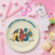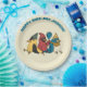 These birds are some regular party animals! This fun party plate features illustrations of three cartoon birds: a goldfinch, a cardinal and a bluebird with party hats and a balloon. It's perfect for anyone throwing a bird-day party or a bird-themed birthday party as the case may be.