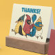 These folded thank you cards are ready for you to write up your own message on the inside and feature illustrations of three cartoon birds: a goldfinch, a cardinal and a bluebird with party hats and a balloon.