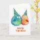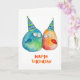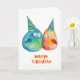 Adorable Happy Birthday card featuring 2 little hand-drawn birds wearing birthday hats. Blank inside, ready for your custom text and/or photo personalisation. © HomeStyle Design Studio