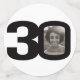 30th birthday black and white graphic stripe and text party confetti. Great to add a personal touch to a surprise birthday party. Personalise with three of your birthday boys or girls photos in the 0 of 30 and personalise with your choice of name. Design by Sarah Trett for www.mylittleeden.com
