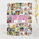 Big personalised birthday card with your own photos and custom messages. The photo template is set up for you to upload 40 photos and you can edit the wording, inside and out. The front is lettered with "happy birthday" in bold modern oversized typography, to which you can add a name or relation (ie Steven, Grandma etc). You can also personalise the message on the inside. Upload your pictures (working in rows from left to right, top to bottom) and these will be displayed in square / instagram format to form a grid around the wording.