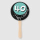 Personalised 40th Birthday Party Hand Fans. Keep cool and wish a Happy Birthday with these hand-held signs. The Name and Age can be Customised by You! These teal, black and white set of fans are double-sided and can also be used as an accent decoration at a gathering.