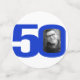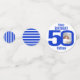 50th birthday blue and white graphic stripe and text party confetti. Great to add a personal touch to a surprise birthday party. Personalise with three of your birthday photos in the 0 of 50 and personalise with your choice of name. Other matching items are available. Design by Sarah Trett for www.mylittleeden.com