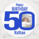 Happy birthday 50th name photo blue white confetti