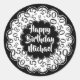 Happy Birthday 50th Number Pattern Black and White Classic Round Sticker