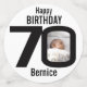 70th birthday black and white graphic stripe and text party confetti. Great to add a personal touch to a surprise birthday party. Personalise with three of your birthday boys or girls photos in the 0 of 70 and personalise with your choice of name. Design by Sarah Trett for www.mylittleeden.com