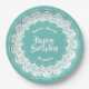 Happy Birthday 70th Teal/White Number Pattern Paper Plate