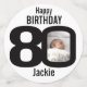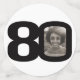 80th birthday black and white graphic stripe and text party confetti. Great to add a personal touch to a surprise birthday party. Personalise with three of your birthday boys or girls photos in the 0 of 80 and personalise with your choice of name. Design by Sarah Trett for www.mylittleeden.com