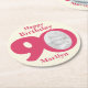 90th birthday party paper coasters. Great to add a personal touch to a surprise birthday party. Personalise with your birthday girls photo in the 0 of 90 and customise with your own name. Design by Sarah Trett.
