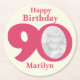 Happy birthday 90 name and photo paper coasters