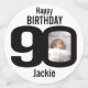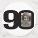 90th birthday black and white graphic stripe and text party confetti. Great to add a personal touch to a surprise ninetieth birthday party. Personalise with three of your birthday boys or girls photos in the 0 of 90 and personalise with your choice of name. Design by Sarah Trett for www.mylittleeden.com