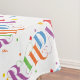 Tell one tell all, it's a party yes fun for all. White fabric tablecloth, all over multi-colour Happy Birthday printed. Great use for easy clean-up after any parties.