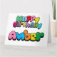 Colourful "Happy Birthday Amber" bubblegum style text.