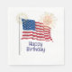 American flag with "Happy Birthday" text and gold fireworks on white.