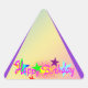 This birthday sign or banner is designed with "Happy Birthday" in a rose colour. Stars in purple, red, blue and multi colours, and a bright yellow sun with rays are used as a backdrop. A rainbow coloured backround and purple border were added. These stickers also match the invitations and are available in assorted shapes and sizes.