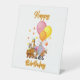This pedestal sign showcases the words "Happy Birthday" in a unique print font with orange letters yellow outline with various jungle animals, birthday party balloons and streamers in this birthday theme and style. Printed with high-quality, full-colour digital print available in 4 sizes made of 1/16" white plastic polystyrene 10" x 12" display with 3" pedestal base.