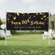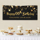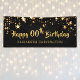 Honour the birthday person (man or woman) and welcome your party guests with this black and gold themed banner with gold stars ideal for celebrating ANY birthday. The design allows you to personalise it with their name and the number of their birthday. If necessary, adjust the word spacing after entering the number by clicking on the CUSTOMIZE tab. Contact the designer if you’d like this design modified, on another product or would like coordinating items for your party ensemble.