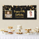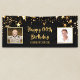 Celebrate any year birthday for him or her with this black and gold stars banner sign featuring two photos (perhaps Then and Now pictures), your custom text in your choice of text font styles and colours and background colour. The sample shows HAPPY # BIRTHDAY NAME. BANNER OPTIONS: The sample is shown in the 2.5x6' size; other sizes are available on the ordering page as well as the option of transferring the design to a foam board, poster, tapestry or other product or have the designer convert it to a DIGITAL DOWNLOAD file for printing locally BEFORE ordering. ASSISTANCE: For help with design modification or personalisation, colour change, resizing, transferring the design to another product or if you would like coordinating items, contact the designer BEFORE ordering via Zazzle Chat or email makeitaboutyoustore@gmail.com.