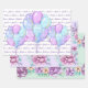 Complimentary Colours of Pinky Purple, Lavender and Turquoise in subtle sophisticated shades with balloons and peony flowers. Everything Created with watercolor paints by your artist with the exception of the fancy font. One has the birthday girl's name filling the background! with large dramatic balloons with glitter. The second sheet has beautiful Peony bouquets. The third sheet has borders on Peony and Eucalyptus and in the middle space it says "Happy Birthday" and You can change the name. Most important, they look great together while being unique.