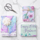 "Happy Birthday" Balloons Floral Purple Lavender Wrapping Paper Sheet