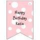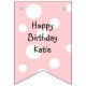 Pale Pink, Mint Green, Polka Dot, Whimsical Hand drawn cake, girl's birthday banner. Just personalise it by changing the name on each flag.