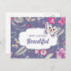 Happy Birthday, Beautiful. Pink Lilac Floral Pattern and Butterfly Watercolor Painting personalised Birthday Postcard for her. Matching greeting cards and gifts available in the Birthday Category of our Store.