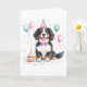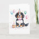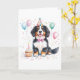 Cute illustration of Bernese Mountain dogs all dress in birthday attire. Perfect for dog lovers or pets birthday!