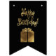 Happy Birthday Elegant Black and White and Gold Look Text Chic Typography and Birthday Present, Birthday Party Decor Bunting Flags