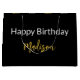 Happy Birthday Black White and Gold Script Name Large Gift Bag