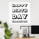 Happy Birthday black white custom name modern fun Poster