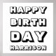 Happy Birthday black and white custom name text modern fun bold party Poster.