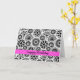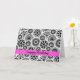 Includes customizable 'Happy Birthday' script on a pink background. Ideal birthday card for fans of bold, minimalist statement designs, retro aesthetics, and graphic monochrome accessories.