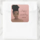 Happy Birthday Black Woman Gold Shades, Pink Blush Square Sticker