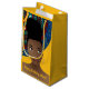 This design features beautiful natural hair woman with a top knot, tribal inspired pattern on gold background.