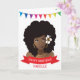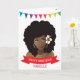 Celebrate your sister, girlfriend, auntie with this card. Colourful gradient banner with Black woman wearing a flower in her natural hair & gold accessories. Customise the message on the red ribbon and name.