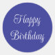 Happy Birthday Blue and White Elegant Script Classic Round Sticker