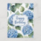 Happy Birthday Blue Hydrangea Flowers Watercolor Postcard