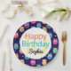 Happy Birthday Blue Owl Pattern Personalised Kids Paper Plate