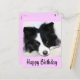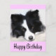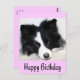 Aww...who can resist the cute face of a Border Collie puppy dog? This fun Happy Birthday greeting postcard features a portrait of a sleepy black and white border collie dog with a pale pink border highlighting a Happy Birthday greeting. br>