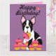 Sweet Dog! Whimsical Boston Terrier Puppy with Pink Cupcakes Customisable Birthday Card The inside greeting can be changed or personalised by you! Click the Customise it button to start!